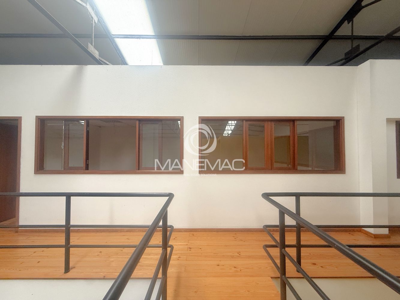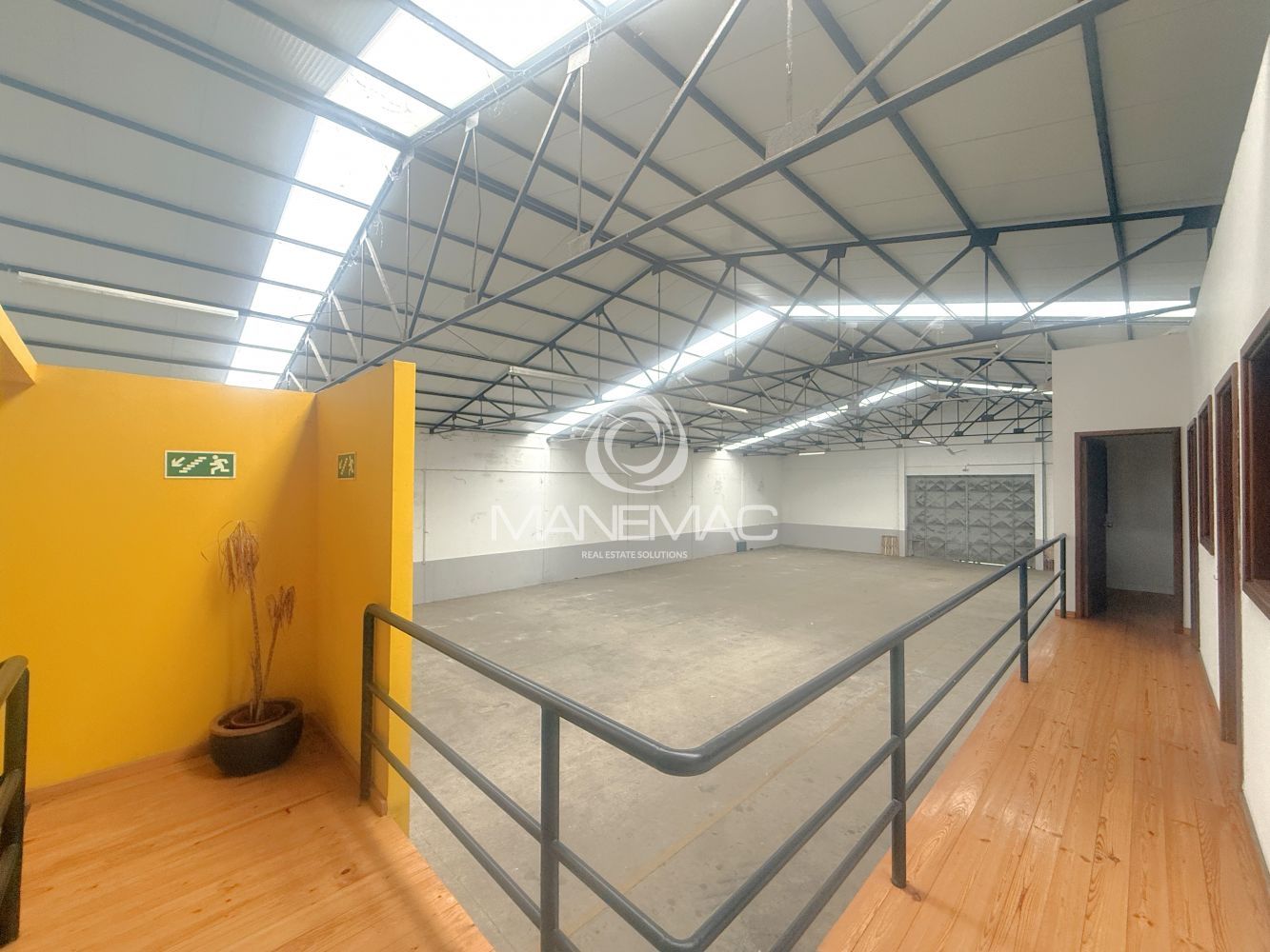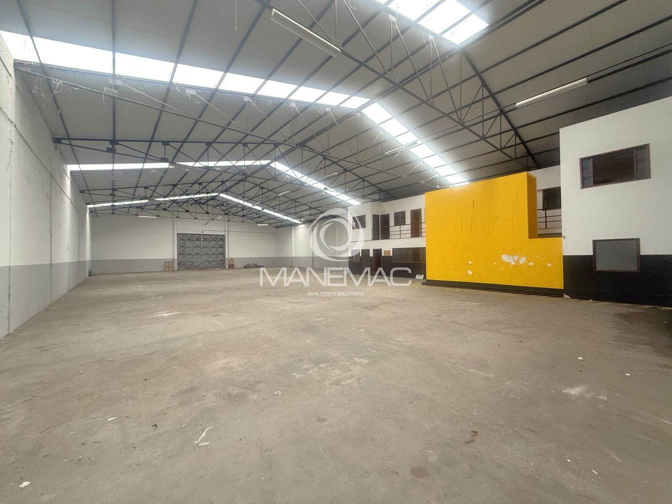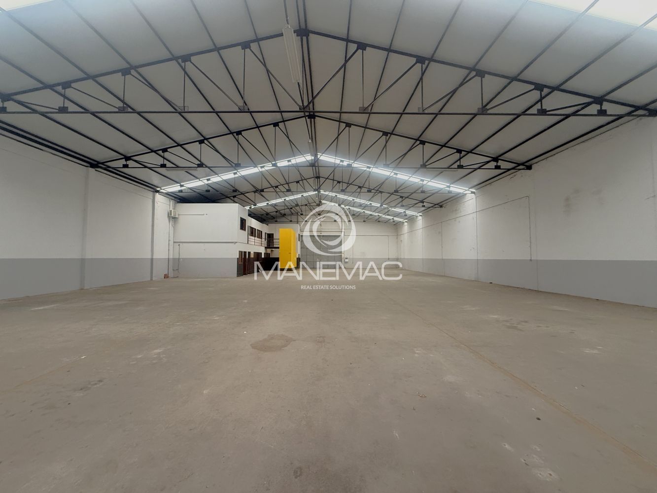 O armazém dispõe de um pé-direito de 6 metros, permitindo armazenamento em altura, instalação de estanterias industriais ou adaptação a diferentes tipos de operação. Conta ainda com telhado novo de Sandwich, com aberturas de luz natural, garantindo ótima iluminação natural no seu interior e maior eficiência energética.